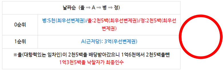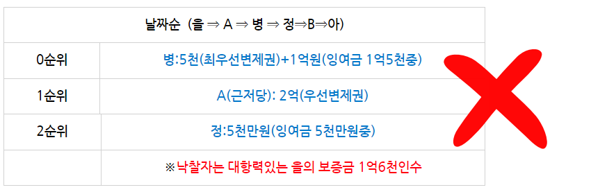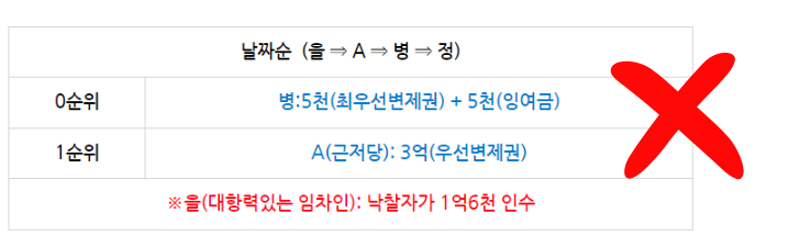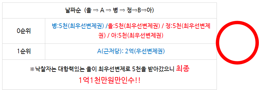 그럼 날짜순서대로 병이 일단 최우선변제금 5천만 받아가고