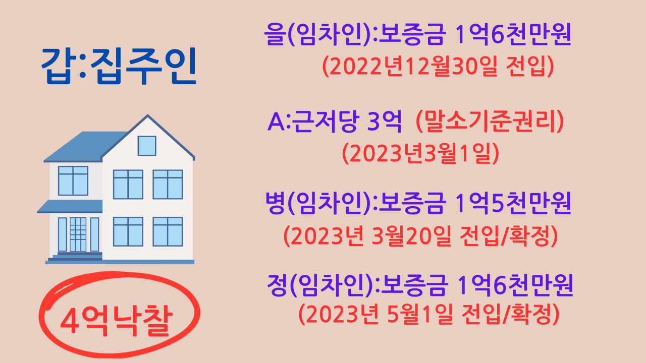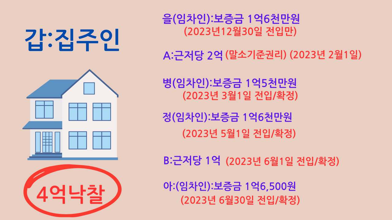 위 그림과 같이 4억에 낙찰되고 권리관계가 위와같다면