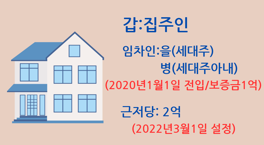 이럴때 아내인 병은 근저당보다 늦게 세대주가 됐지만 병은 을의 아내이기 때문에 처음에 을과 전입신고했던 날짜를 승계받아서 여전히 대항력을 가지게됩니다.