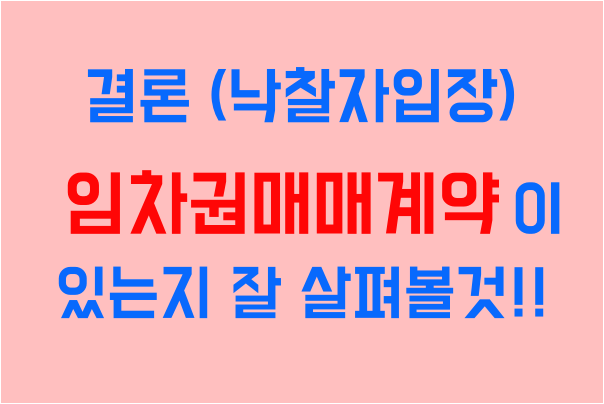 "임차권매매계약"이 되어있는 물건이 많지는 않겠지만 단 1퍼센트의 위험성도 인지하고 대비해야하는게 경매인듯 합니다. 경매로 돈버는것도 중요하지만 일단은 위험한 물건을 낙찰받지않는게 더 중요합니다.