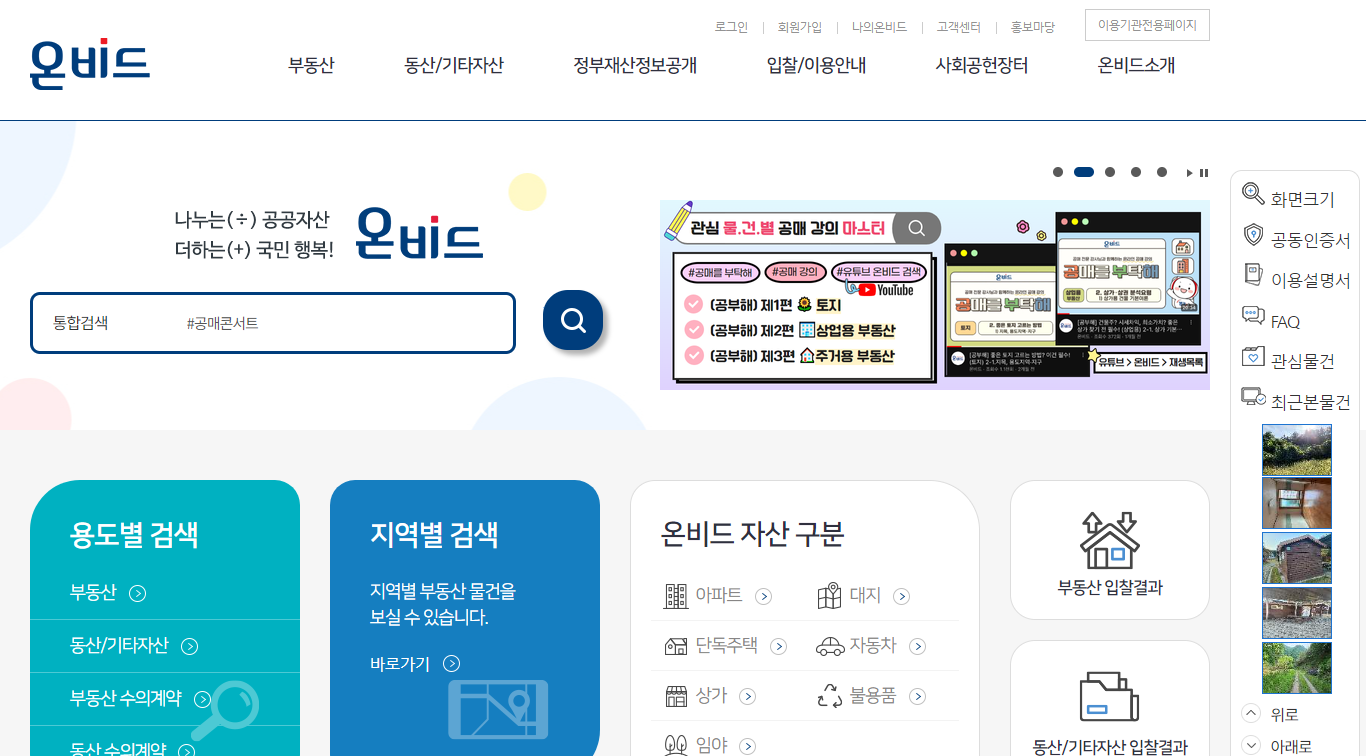 한국자산관리공사에서 시행하는 공매는 경매와 달리 전자입찰방식으로서 직접 법원에 가지않고 인터넷상으로 참가합니다.