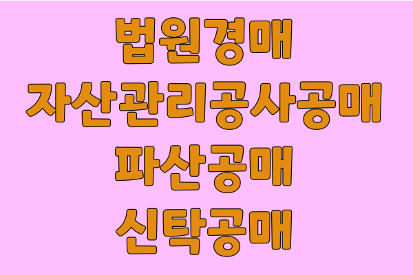 우리가 보통 많이 아는 법원경매와 자산관리공사공매가있고 다음으로 파산공매, 신탁공매,