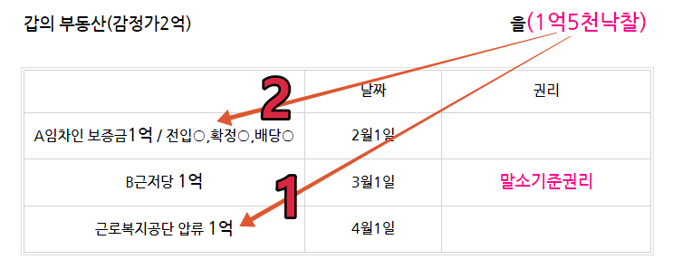 그렇다면 임차인이 못받은 5천만원은 낙찰자인 을이 인수해야되는것입니다. 임차인의 보증금은 말소기준권리보다 선순위 이기때문에 낙찰후 그 권리가 소멸되지않고 낙찰자가 인수해야되는 것이죠.