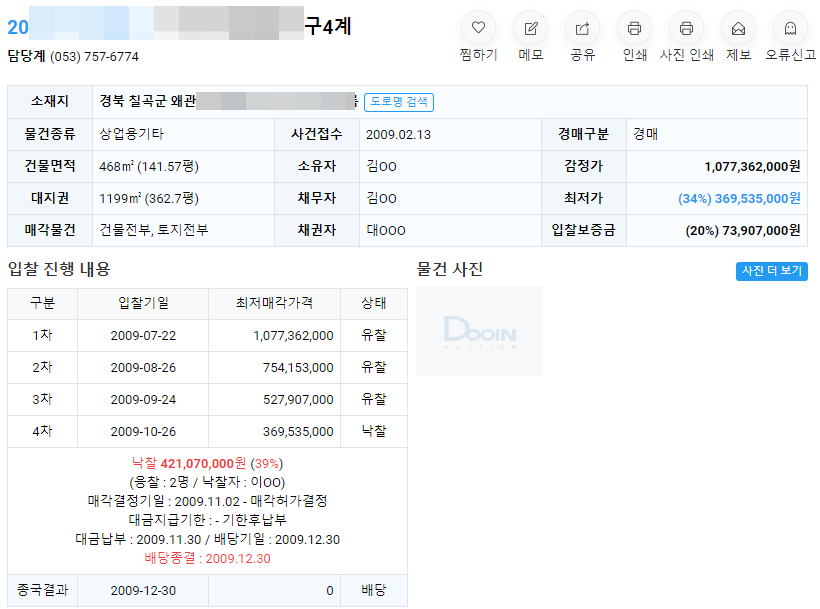 위 경매물건은 감정가 10억짜리 공장이 4억원에 낙찰이 됐는데요.