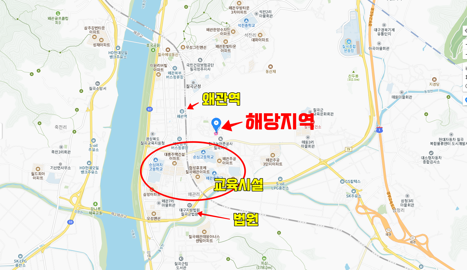 또한 해당지역 근처에 왜관역, 많은 교육시설, 거기에다 법원까지 위치가 끝내줍니다.