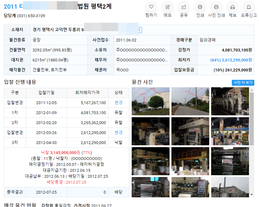 위 경매물건은 감정가 10억짜리 공장이 4억원에 낙찰이 됐는데요.