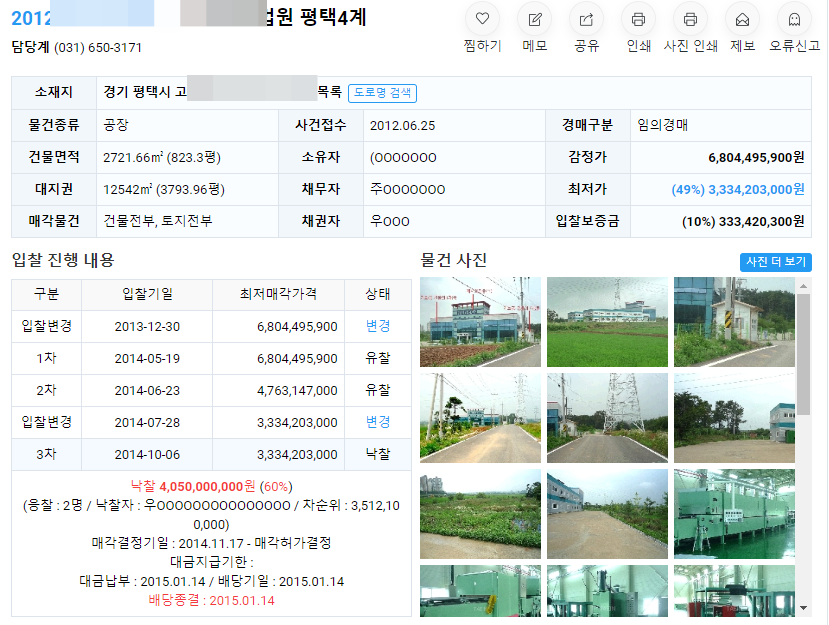 위 공장은 시세68억이 40억 가량에 낙찰이 됐네요