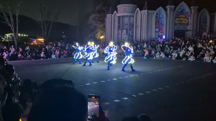 카니발 퍼레이드가 끝나면 30분정도후 회전목마 바로옆 '포시즌 가든'에서 불꽃축제를 한답니다.