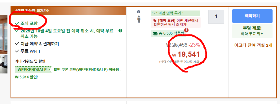 조식포함 19.000원이네요 ㅎㄷㄷ