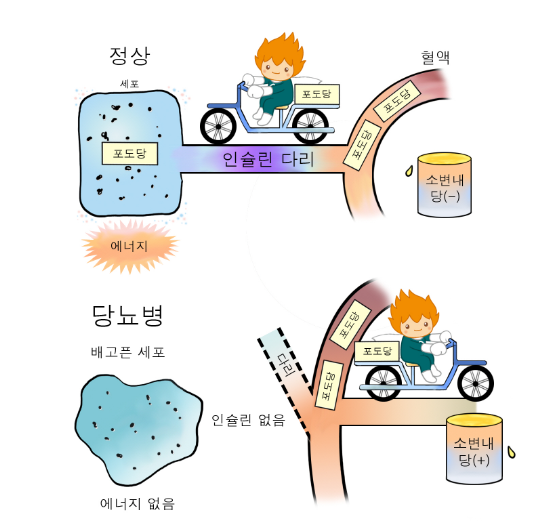 포도당을 혈액속에 잘 전달해주지 못하니 영양분이 골고루 가지 못할테고 간과 근육에 포도당을 제대로 저장도 못하겠죠.