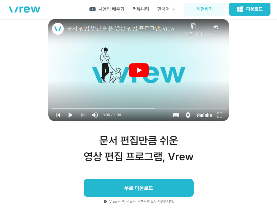 4. 이렇게 영어와 한글문장을 만들었으면 구글에 VREW(브루)를 검색해서 브루를 다운받으시면 됩니다.