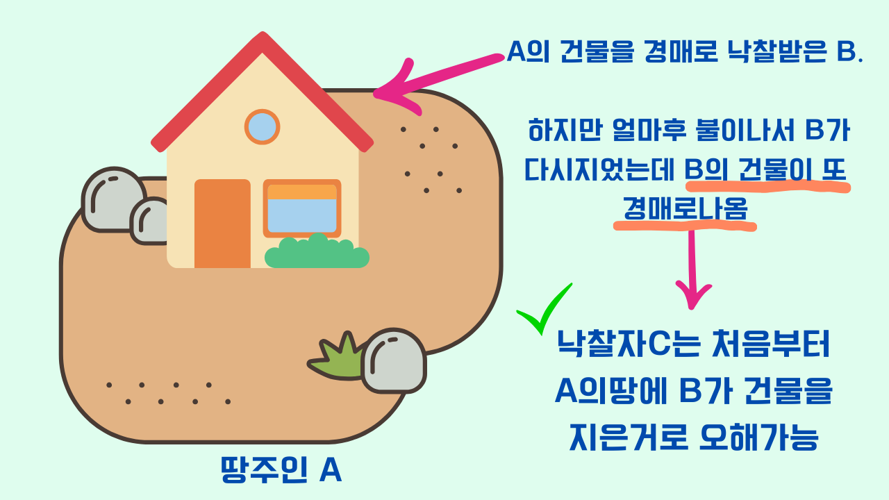 만약 낙찰자C가 A의땅을 낙찰받는다면 B의건물에