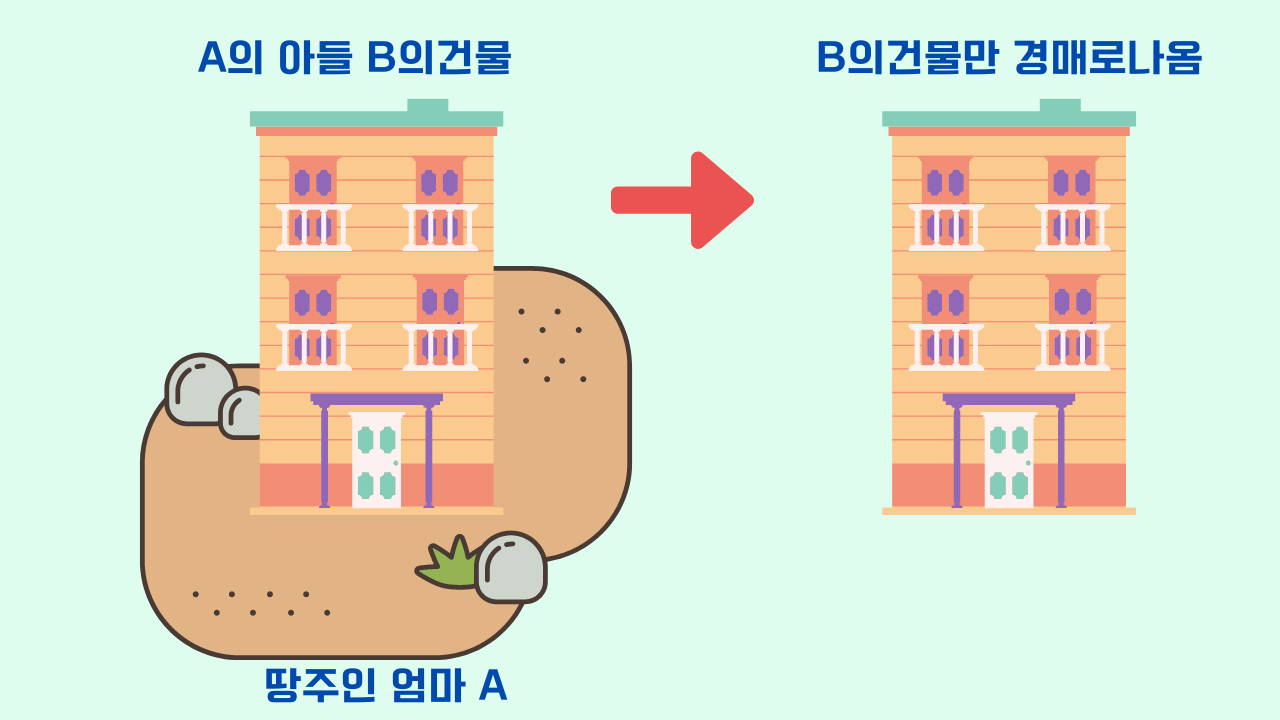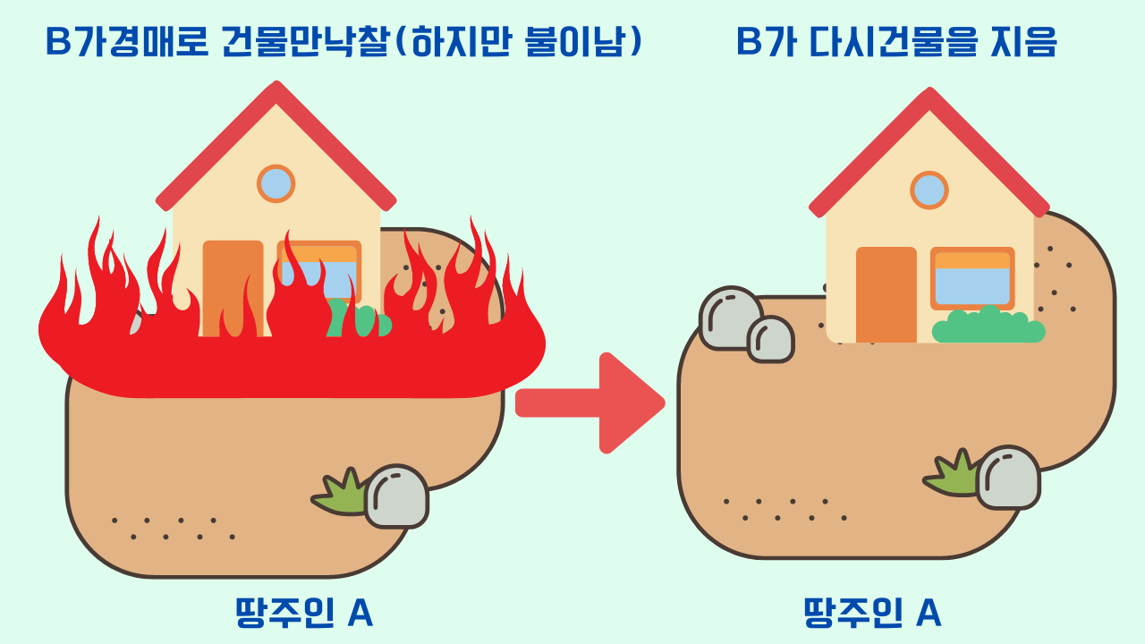 B가 A의땅에있는 A의 건물을 경매로 낙찰받았습니다.