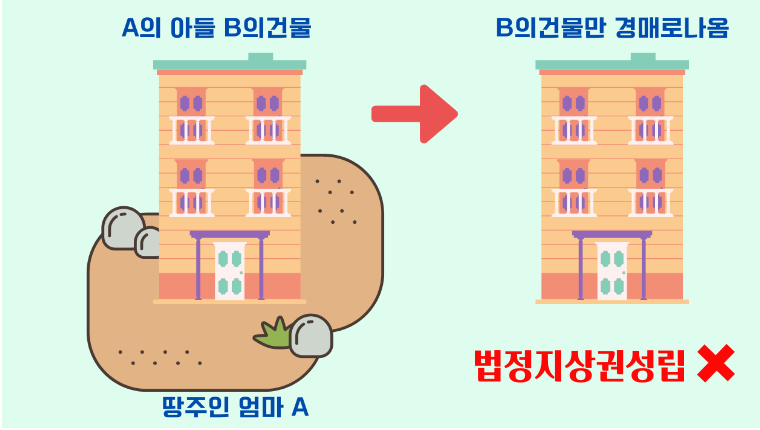 하지만!! 똑같이 A의땅에 B가 건물을 지었는데 법정지상권이 성립되는 경우가 있다??