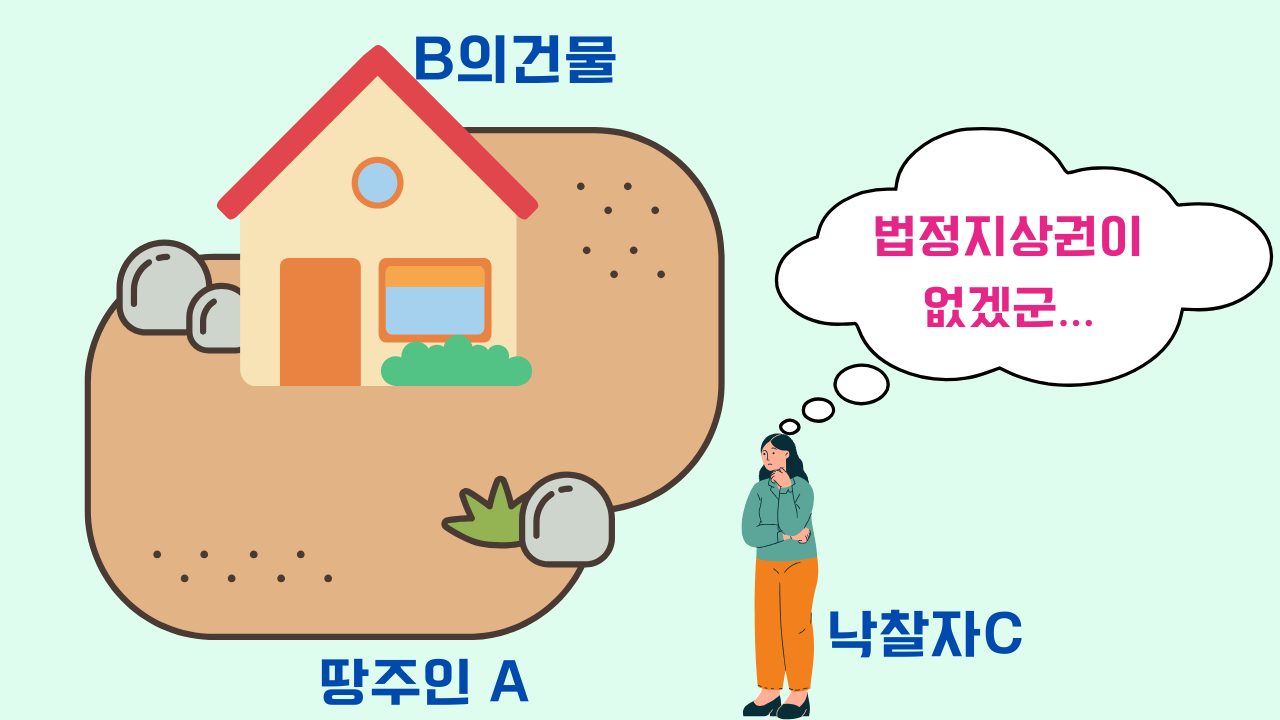 만약 낙찰자C가 A의땅을 낙찰받는다면 B의건물에