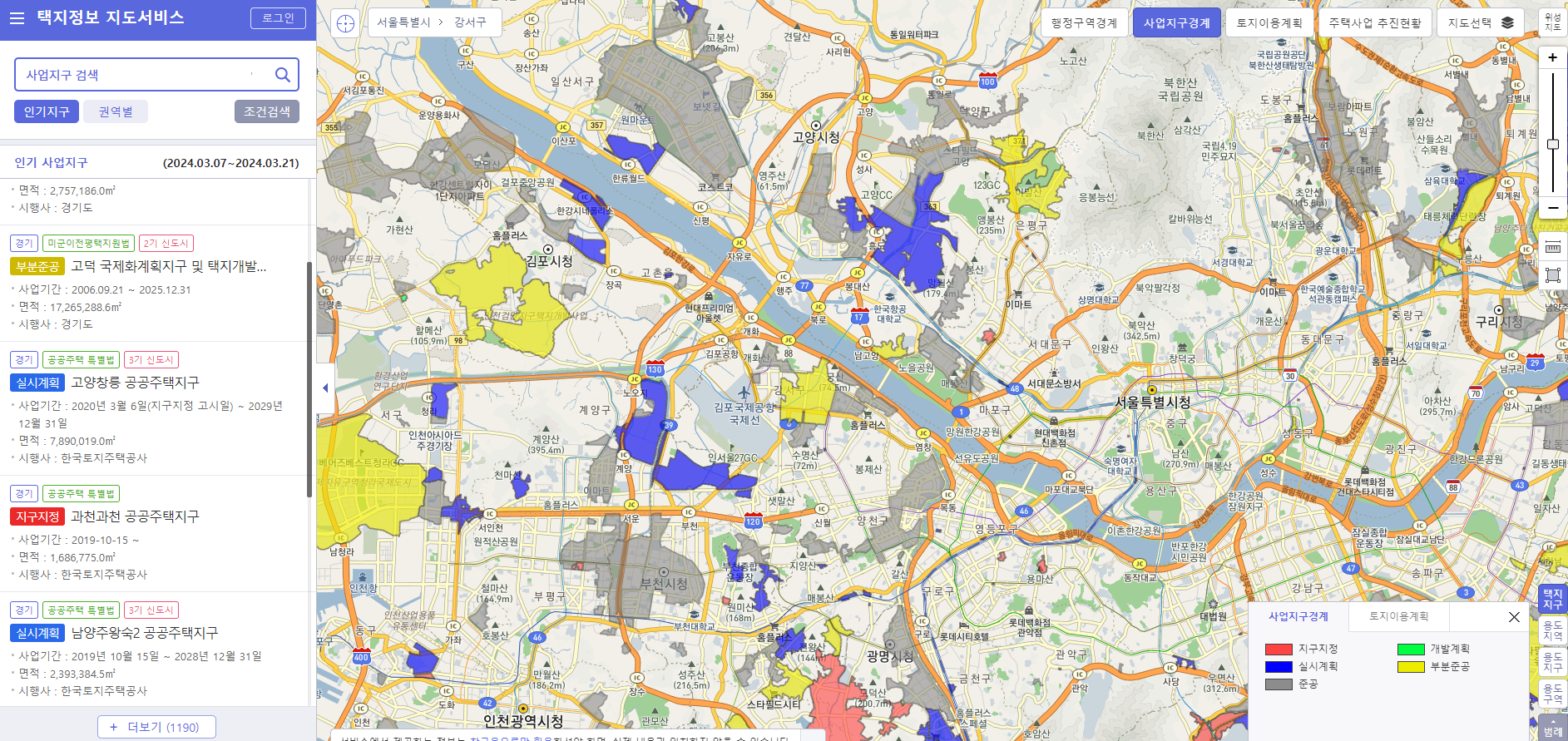 택지,주택수급계획,공급,미분양 현황,사업지구 정보를 제공합니다.