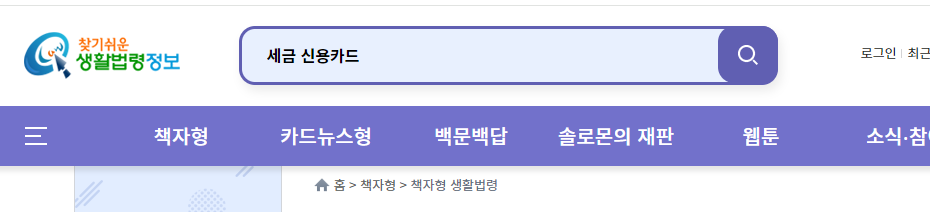 예를들어 세금을 신용카드로 납부가능한지를 알아보고싶어 '세금 신용카드'로 검색을 해보겠습니다