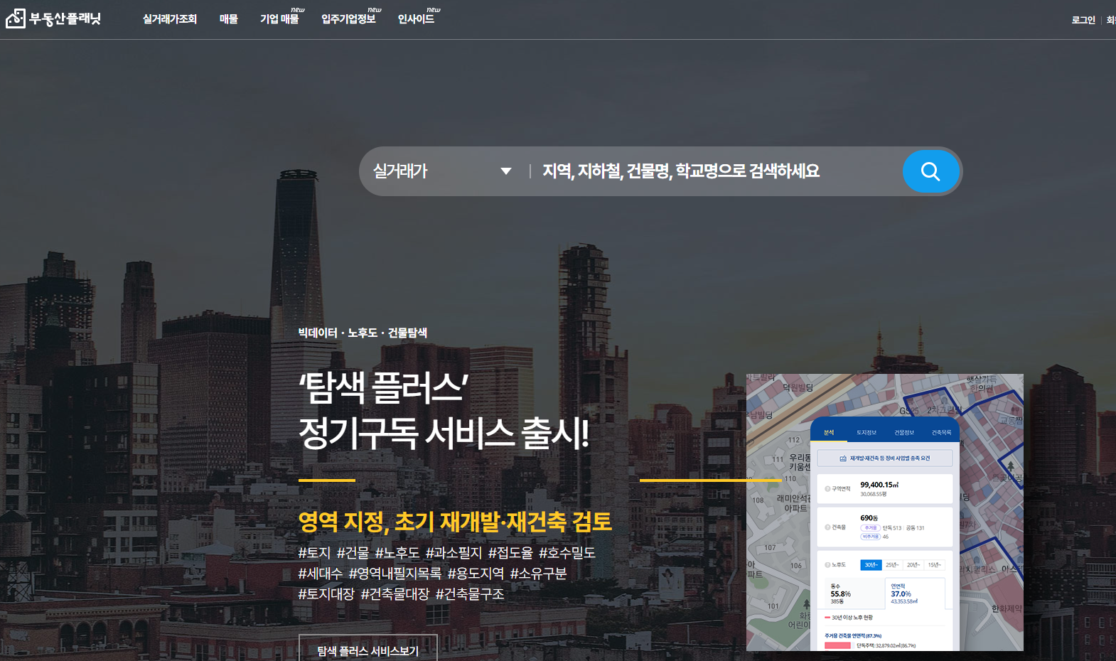 부동산 유형별 실거래와 위치정보를 제공합니다.