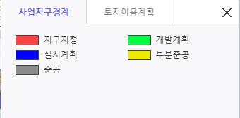 지도서비스를 클릭하면 사업지구 경계를 서로 다른 색으로 구분을 해놓았습니다.