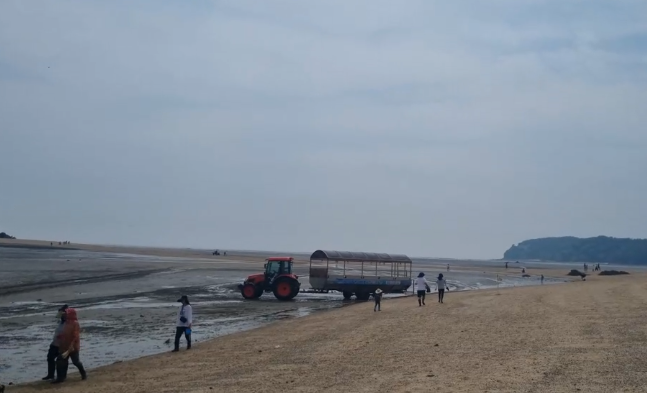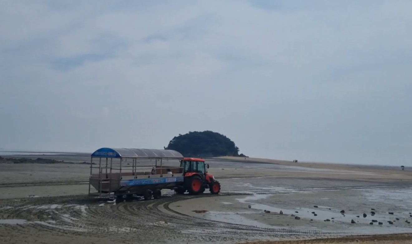또 선재도는 갯벌체험 조개케기하도록 갯벌지까지 데려다주는 차들이