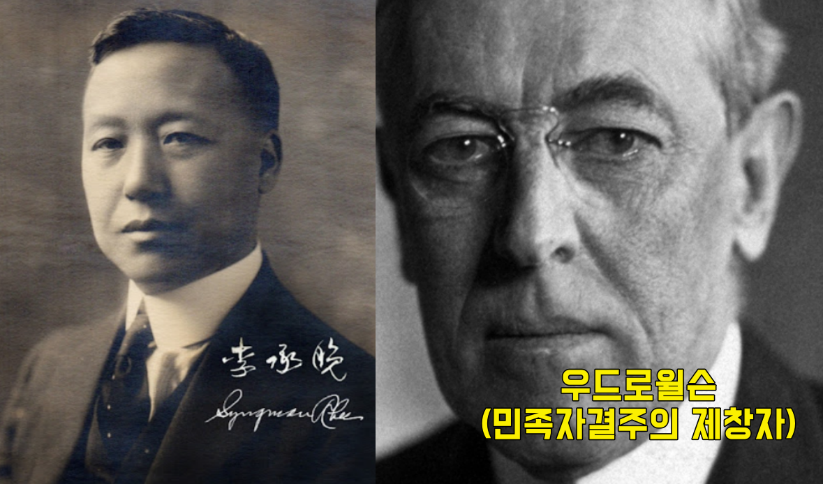이승만은 1919년당시 민족 자결주의를 제창했던 우드로 윌슨이라는 미국대통령에게서 한때 논문지도를 직접 받았던 장학생입니다.
