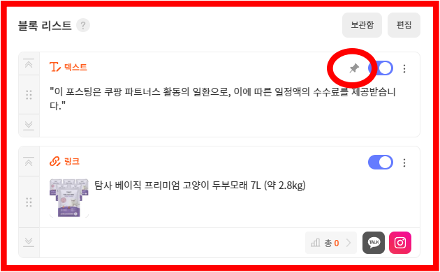 여기까지 하셨으면 위에 '링크 블록 리스트'가 생겼습니다.