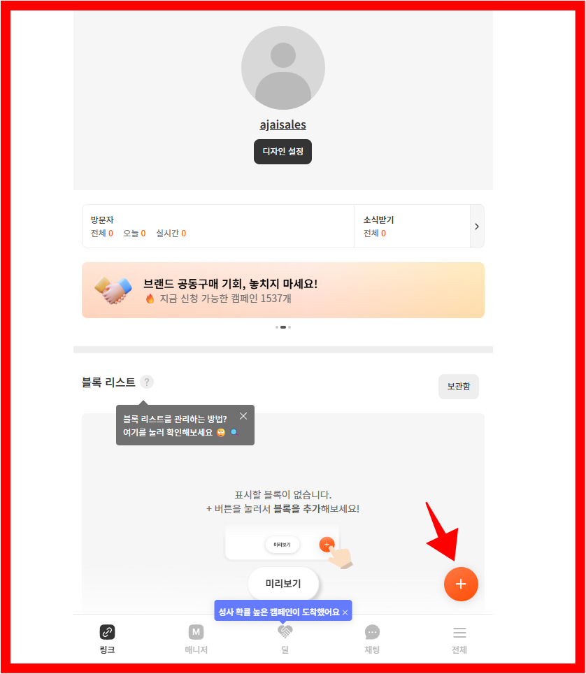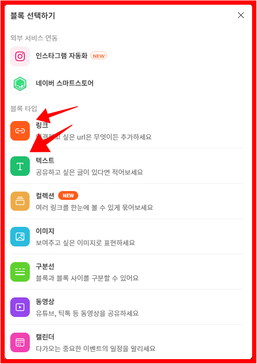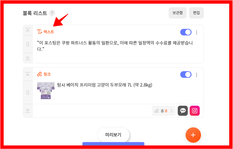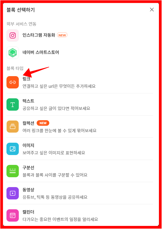 여기까지 하셨으면 위에 '링크 블록 리스트'가 생겼습니다.