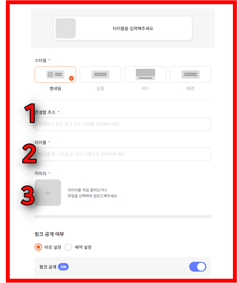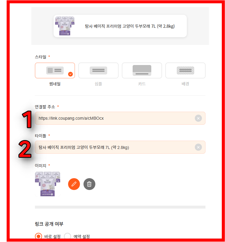 팔물건의 링크를 1번 '연결할 주소'에 복붙합니다.