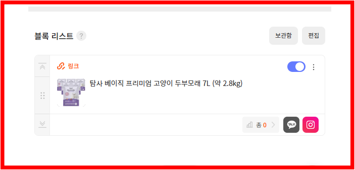 그리고 확인을 누르면 아래와같이 하나의 링크 블록이 생깁니다.