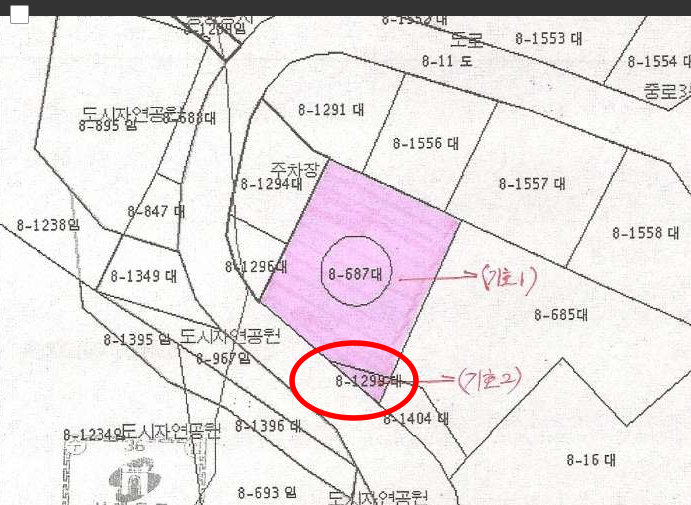 위 그림에서 해당토지는 도로등을 지자체에서 만들어주다보니 짜투리땅으로