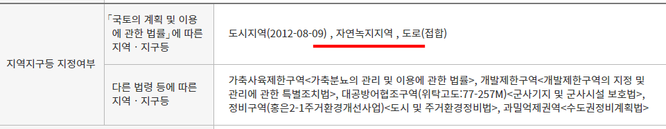 만약 이런지역의 물건이 경매로 나온다면 자연녹지지역이기때문에