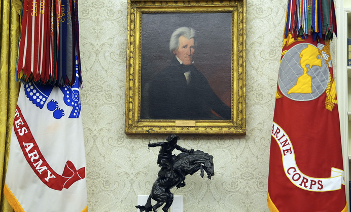 두번째가 '앤드류잭슨'이라는 미국 제7대 대통령을 자신의 집무실에 걸어놓은겁니다.