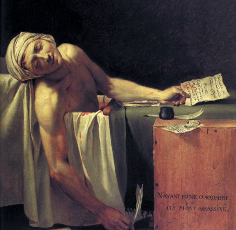 받고싶다는 구실로 마라의 허락을받고 그의 집에 들어와 욕조 속에있던 그를 칼로 찔러 죽입니다.