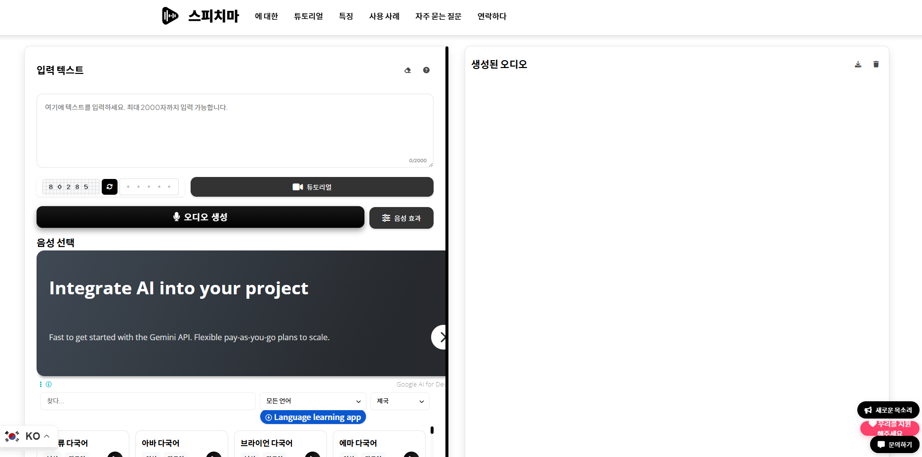 | Speechma | 음성 생성 (TTS) | 나레이션, 더빙, 성우 작업 |